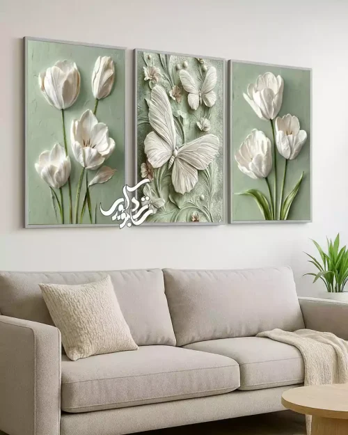 ست تابلو سهتکه مدرن | گل و پروانه های هنری