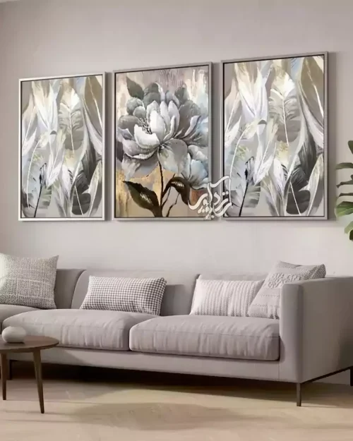 ست تابلو سهتکه مدرن | گل و پرهای مینیمال