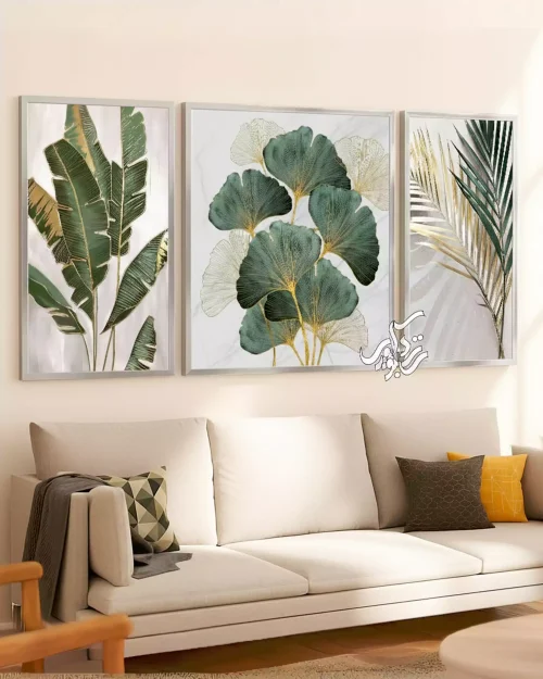 ست سهتکه تابلو دکوراتیو مدرن | برگهای استوایی